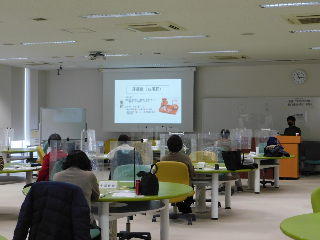 12月4日(土)、初冬を思わせるような冷たい空気に包まれたさいたまキャンパスにおいて、令和3年度伊奈町学校開放講座(後期)第3回目を対面式で開講し、伊奈町民9名が受講しました。