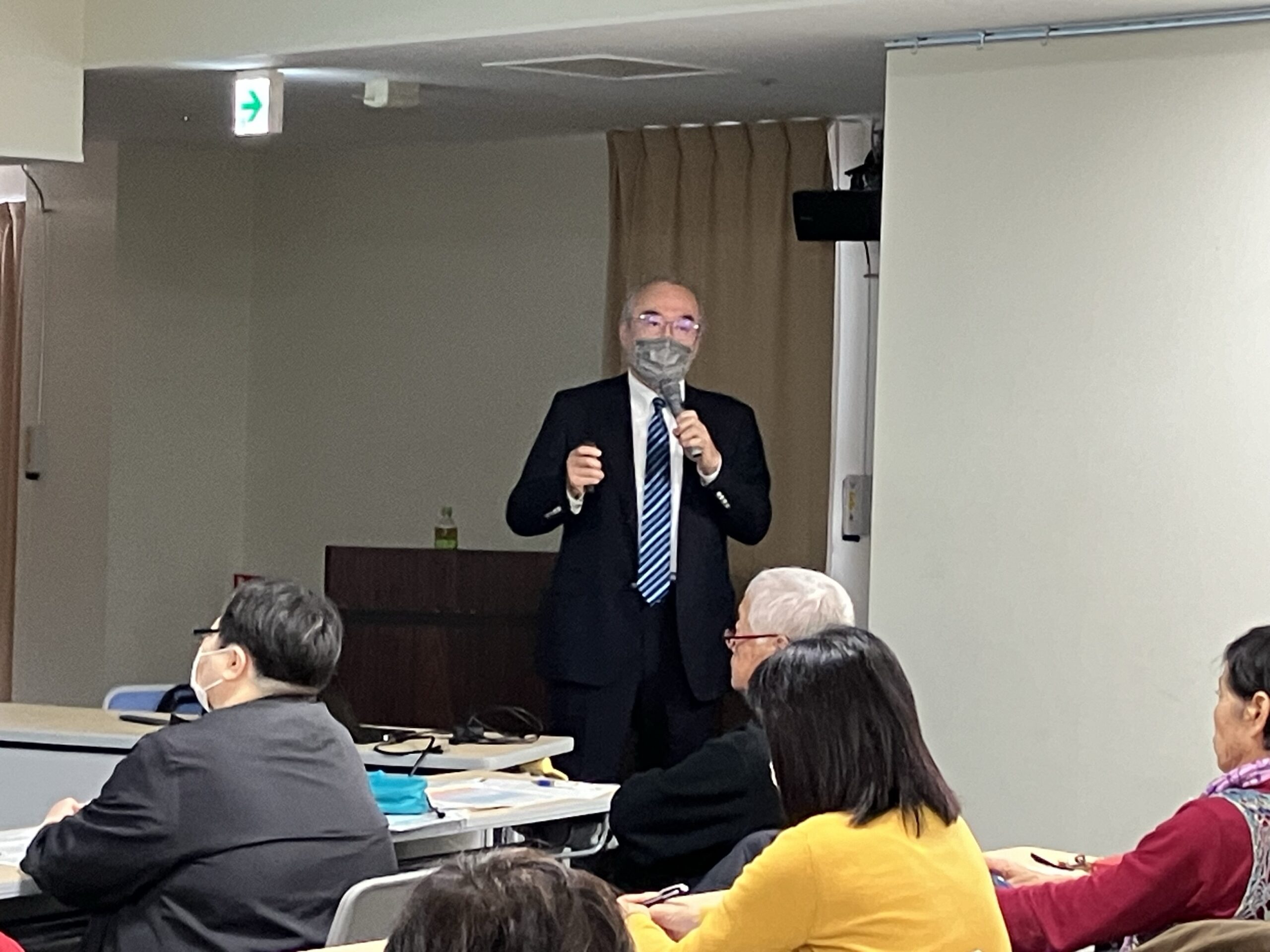 講演は薬が併せもつ『主作用』と『副作用』などについての難しい内容でしたが、数種類の身近な薬を例に、薬は治したいところだけでなく他にも影響を与えることがあり、それを踏まえた上で治療の選択や、セカンドオピニオン・サードオピニオンを利用することでご自身にあった薬を選択することが大事であることや最近話題となっている市販薬のオーバードーズ(過剰摂取)についてもユーモアを交えてわかりやすく講演していただき、受講者は体を元気にするための薬も一歩使い方を間違えると危険が生じるということを納得していただいたようでした。