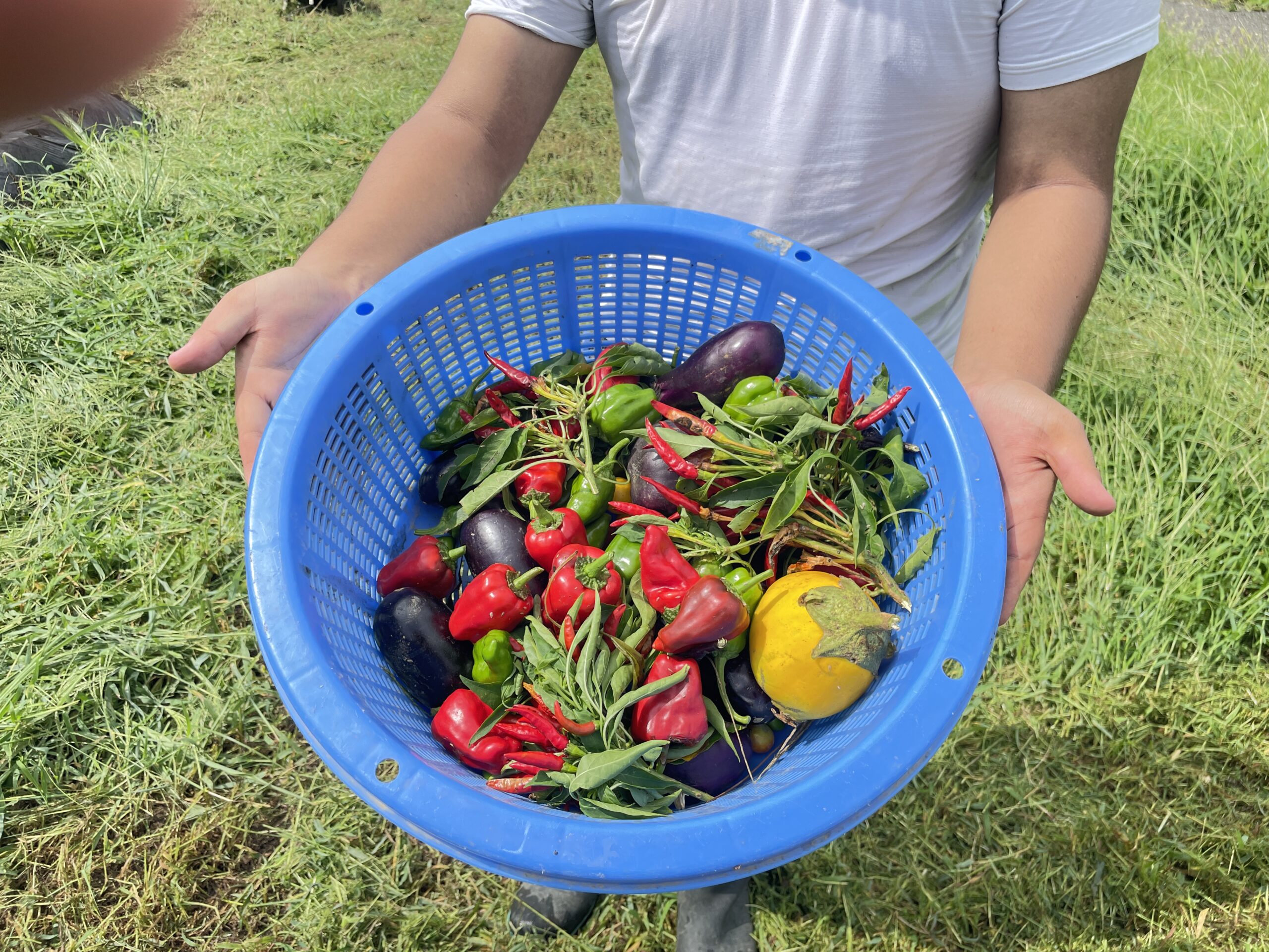 この日は、夏野菜の最後の収穫としてパブリカ、ピーマン、ナス、唐辛子を収穫しました。次回からは秋から冬に収穫できる野菜を栽培することになり、生徒は地球温暖化が異常なほどに進んでいることを実感したため、栽培する作物、栽培方法を考えなければと話していました。