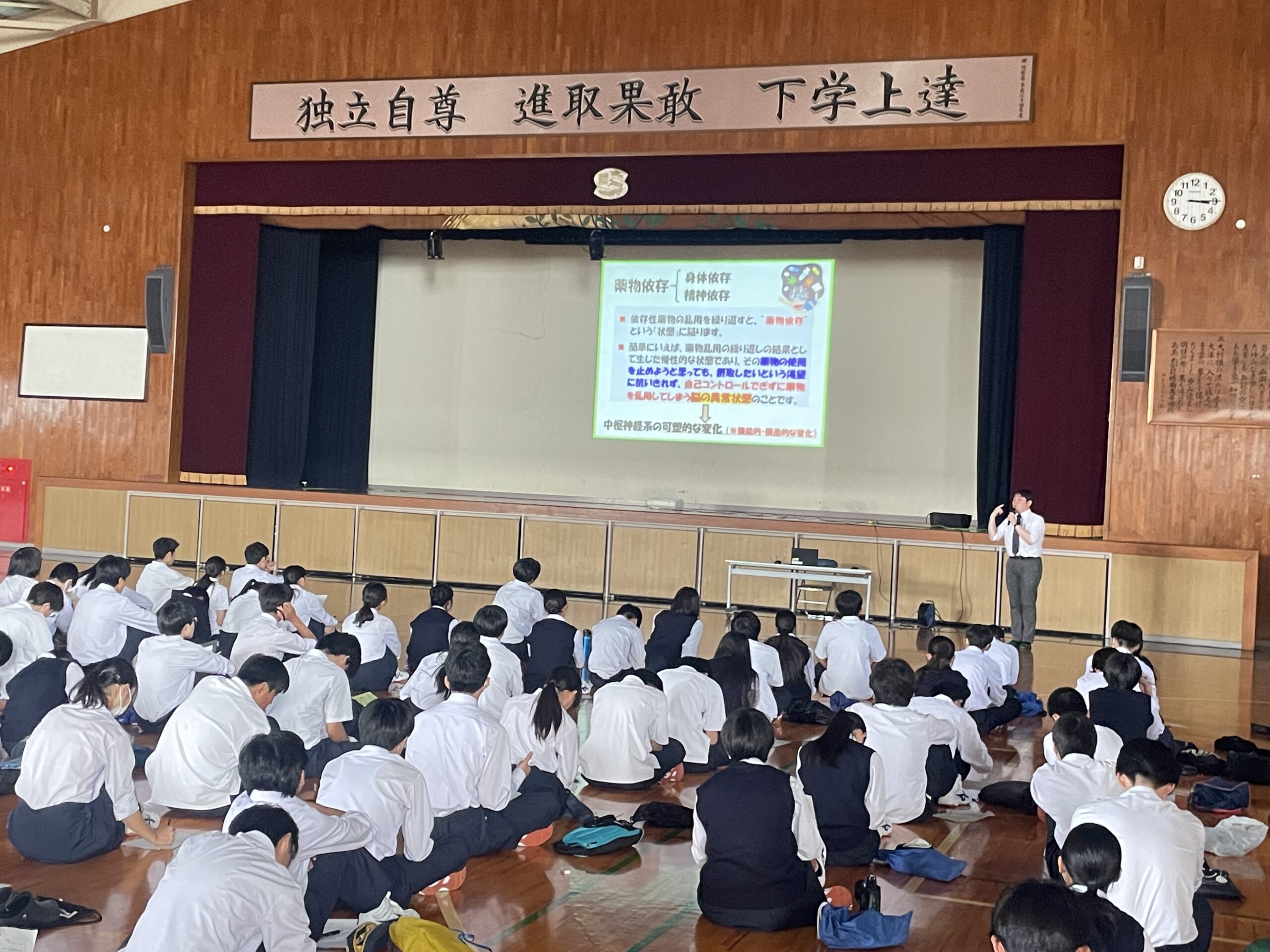 瀧沢教授は「正しい知識を持つことが、誘惑に負けない一番の力になります」と呼びかけ、参加した生徒たちは真剣に耳を傾けていました。