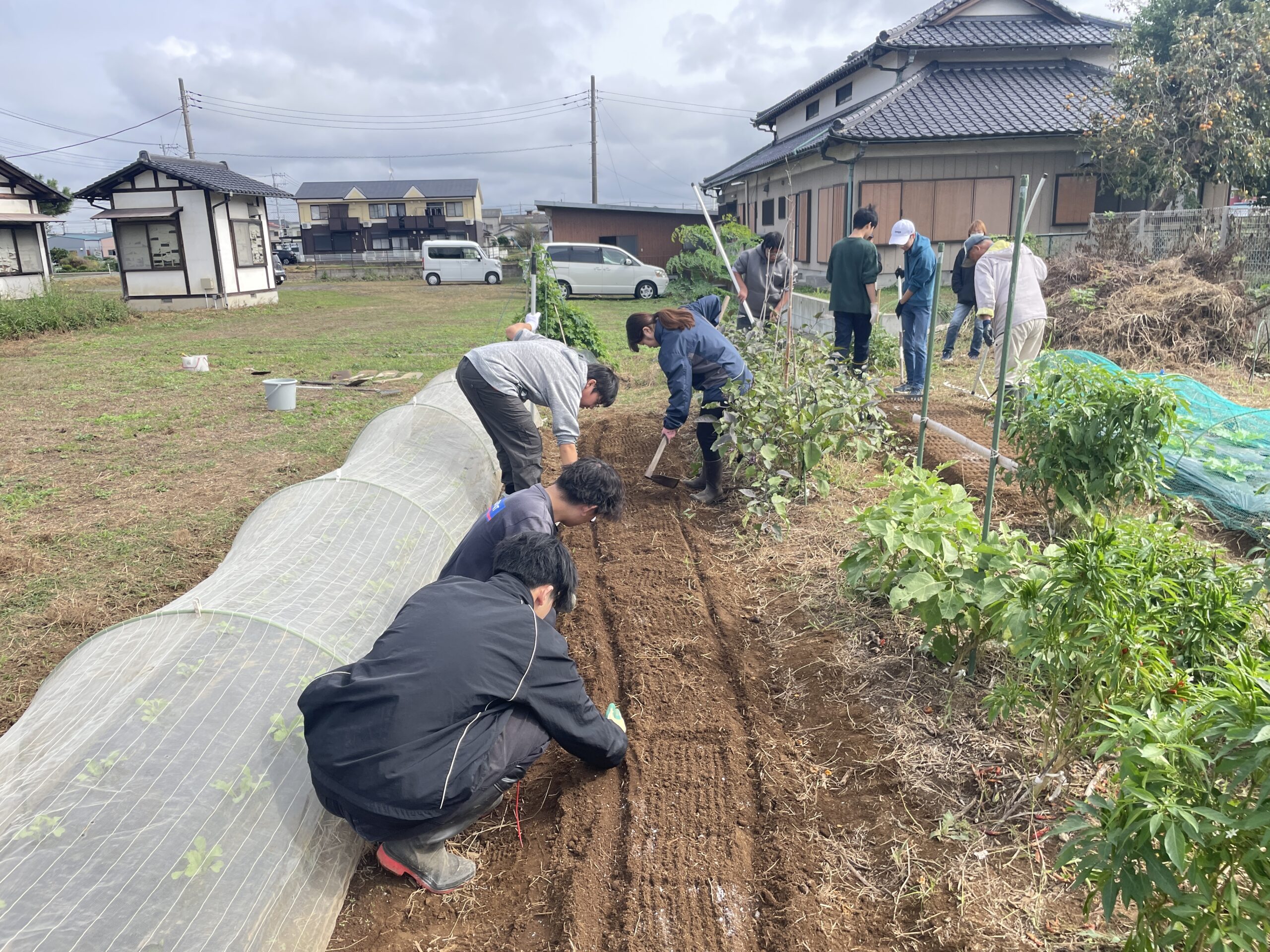 この日はホウレン草、小松菜の種を蒔きました。ホウレン草と小松菜の栽培に適した土壌にするために石灰を畑にまき土壌改良を行いました。地球環境を考えて栽培を行っています。