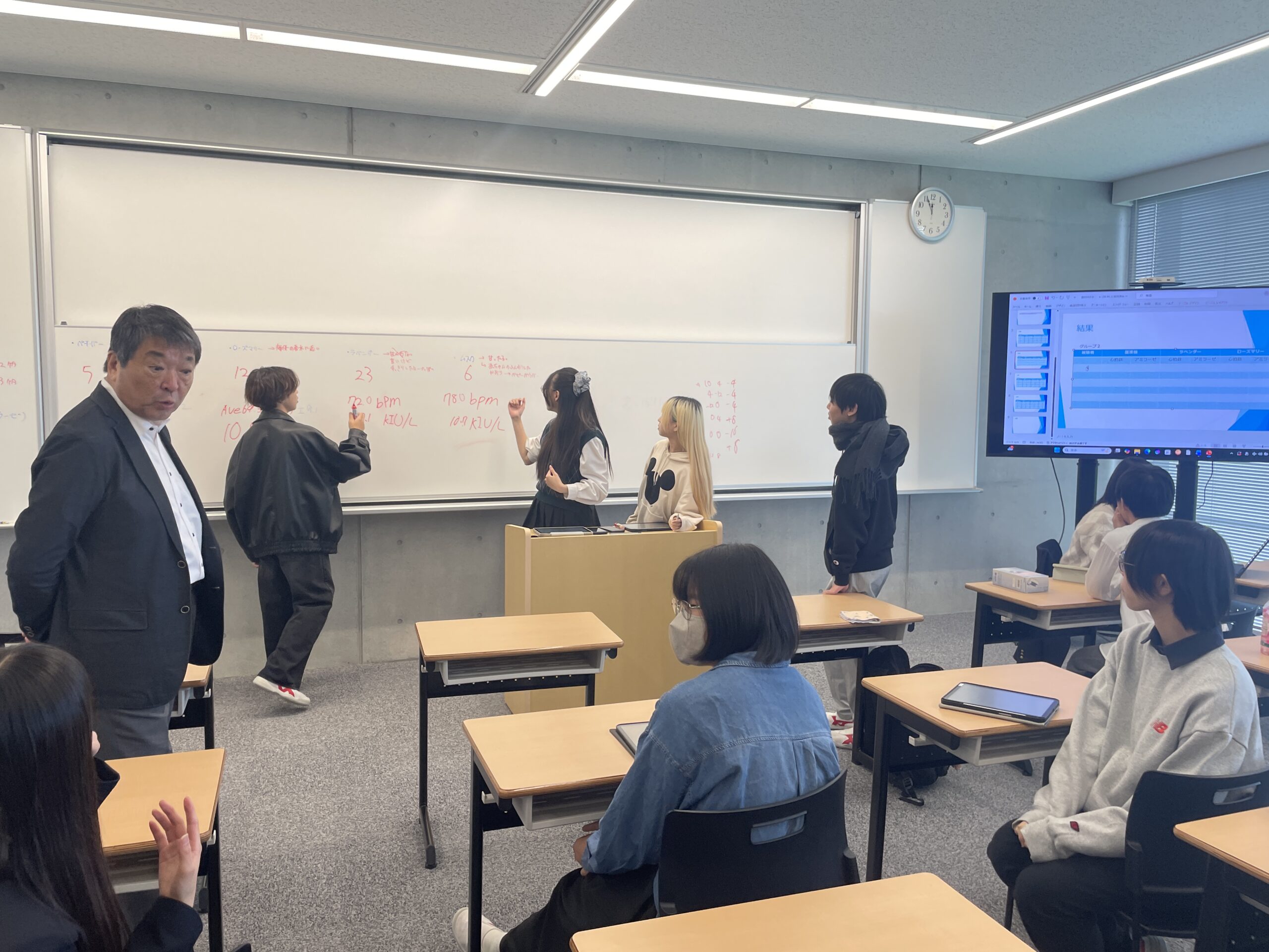 この日は、前回ビューティウェルネスゼミと合同で探究授業を行った「“香り”による発散効果」を検証するための実験データをまとめました。